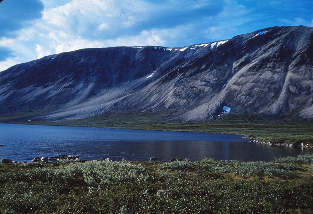 Although the Dutch author’s trips to Scandinavia were linked to his scientific career, they were also very productive for him from an artistic point of view. The photographs attest firsthand to what Hermans saw, and in Beyond Sleep, he builds on his own experiences in Norway to recount the fictional misadventures of Alfred Issendorf, a Dutch PhD student in geology who travels to Finnmark for a field study. Photographically, Hermans purveys an image of Norway’s natural beauty: his meticulously catalogued photo collection predominately features landscape photos. It is essential to specify that many of these photographs were taken with scientific ends in mind; the photographs served as field documentation for bodies of water, rock formations, and vegetation.3 Textually, however, Hermans paints a far more sinister picture of the country in Beyond Sleep. Lurking beneath the picturesque views, Alfred discovers a country that is fundamentally inhospitable. The university professors on whom Alfred must rely for aerial photographs seem incompetent and unwilling to help, and the Norwegian weather and terrain prove equally hostile. Alfred even loses his travel mate Arne, who tragically falls to his death.