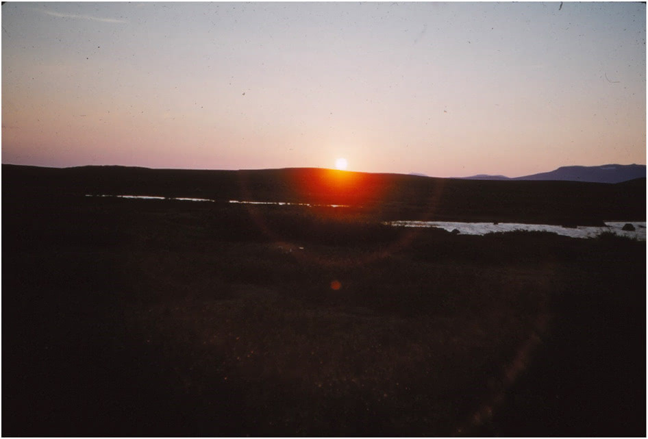 […] the sun is low but blazing in full force. At home, when the sun shines like this at the end of a summer’s day, we know dusk will soon fall. As it is, it’s going on for midnight, and this is as dark as it will get.(Hermans 2020: 91)23
