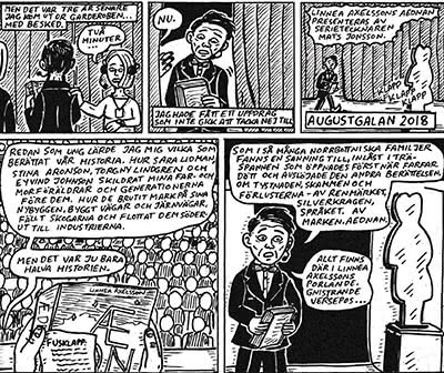 Jonsson narrates about his research and the way he writes. He also reflects indirectly on autofictional writing from a class perspective. Among others, he refers to writer Alexander Schulman, who had carried out the same type of project. Schulman did research at the University Library in Uppsala and could borrow and read all his ancestors’ archives. That was something Jonsson could not do because in his case there were no archives. Jonsson suggests that this is one of the effects of the class difference. Schulman wrote an autobiographical book about his grandparents and discovered that his grandmother had an affair with the famous literary critic Olof Lagercrantz (1911-2002). Schulman is not the only Swedish writer Jonsson refers to.