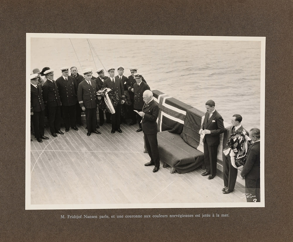 C’est l’occasion pour les touristes de voir de nombreux Norvégiens. Edmond Delage, en proposant un monument pour les disparus du Latham, explique que cela « resserrerait encore la sympathie, si vive, que se portent les deux peuples. »41 La plaque ne répond pas vraiment à ses vœux, puisqu’elle est financée par Le Temps et non par une souscription, et puisqu’elle est en français seulement. Elle sert donc avant tout aux Français, même si elle est utilisée lors d’une cérémonie pour Amundsen en décembre 193642 – donnant raison à Anne Eriksen pour qui, en Norvège, la mort d’Amundsen a largement éclipsé celle du reste de l’équipage.