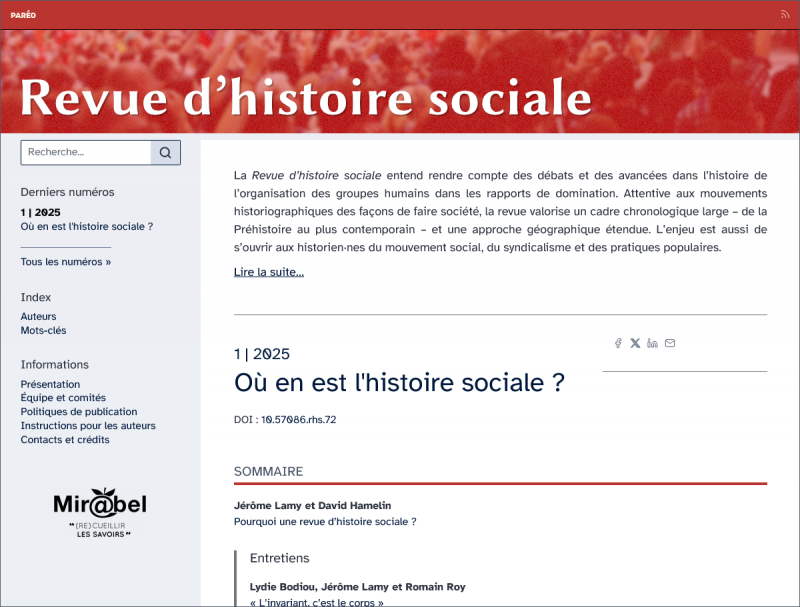 La Revue d’histoire sociale a rejoint la pépinière PARÉO. L’Ouvroir a accompagné et suivi sa création. Cette revue pluridisciplinaire est consacrée au courant de recherche historique éponyme et s’adresse « non seulement aux universitaires, aux étudiant∙es, au grand public curieux d’histoire s… Lire la suite »